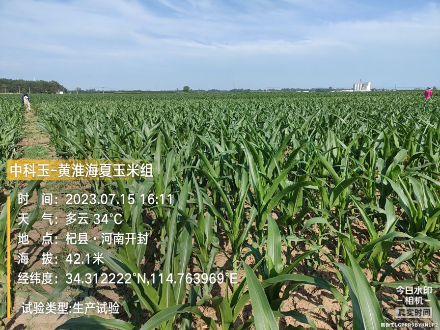 7月15日考察河南開封試點,試驗類型:黃淮海夏玉米組,生產試驗。承試單位:河南五谷種業有限公司。試點描述:試驗地肥力均勻,土地平整,嚴格按照方案要求種植,田間苗齊苗全,長勢均勻,有輕微雜草。試點綜合評價優。