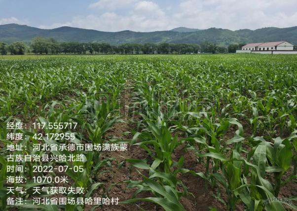 7月5日考察了河北省圍場試點(diǎn);試驗(yàn)類型:北方極早熟區(qū)試/生試;是由承德市圍場縣佳禾種業(yè)公司承試;試點(diǎn)描述:播種期低溫、低濕,苗期高溫、低濕有粉籽現(xiàn)象,保苗率90%以上,個(gè)別品種有大小苗,玉米展開葉片數(shù)7-8片。試驗(yàn)人員專業(yè)負(fù)責(zé),田間管理到位,長勢好。