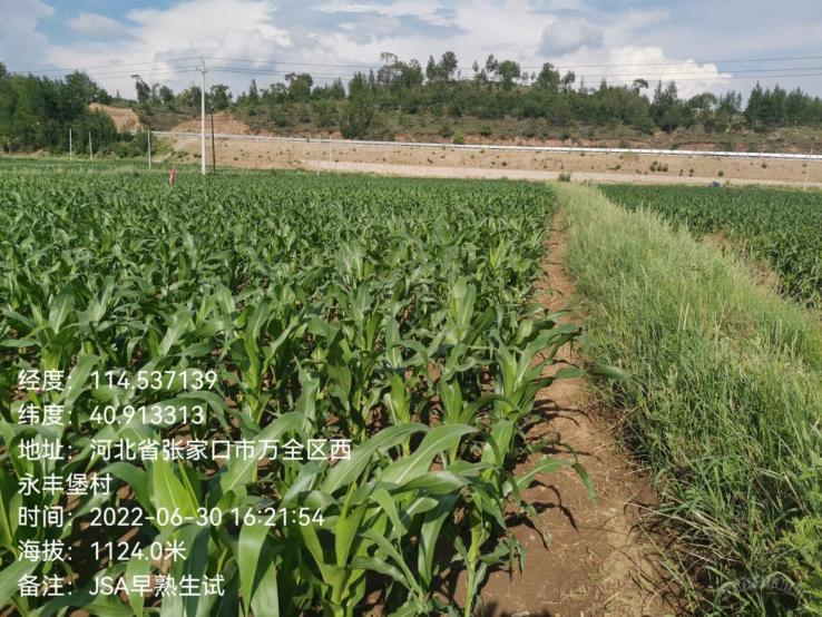 6月30日視頻考察河北張家口試點;試驗類型:北方早熟區試/生試,是由張家口市惠君農業科技有限公司承試,試點描述:該點春季低溫干旱,出苗滿足試驗要求,個別品種出苗不勻有大小苗,玉米展開葉片數9片,試驗人員專業負責,田間管理到位,玉米長勢較好,苗齊苗全。