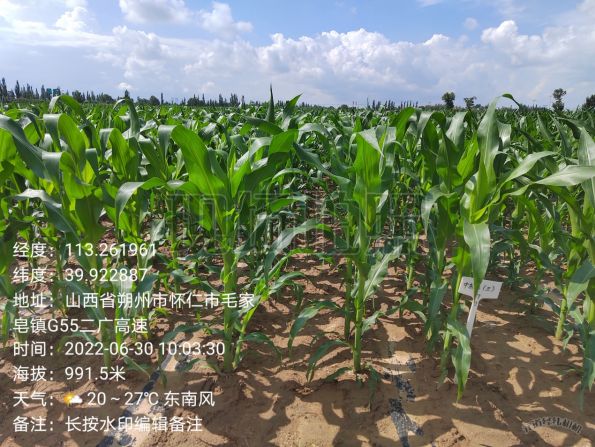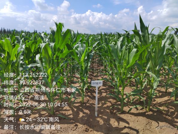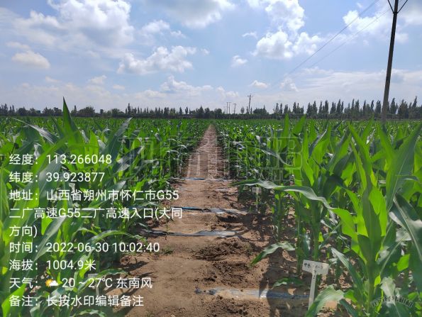 試驗類型:東華北中早熟區(qū)試、生試試驗;是由山西省農(nóng)科院高寒區(qū)作物研究所承試;試點描述:試驗采用覆膜滴灌種植模式,播種后進行了滴灌,苗期墑情好。在5月2日播種后到6月10日,整體氣溫較往年偏低,基本沒有有效降雨。5月26日噴施苗后除草劑,苗期長勢特別好,幼苗健壯。幼苗長勢整齊。賽德2022于5月12日播種,5月25日出苗。福盛園309于5月9日播種,5月23出苗。睿德282于5月9日播種,5月23日出苗。5月2日播種,5月17日出苗。5月25日間苗,試驗人員專業(yè),田間管理精細,配合考察積極,綜合評價優(yōu)。