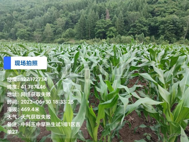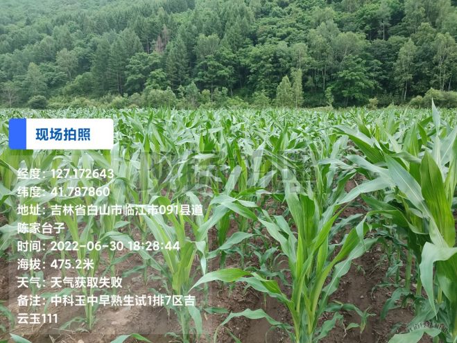 白山生試試點(diǎn):試驗(yàn)類型:東華北中早熟生試試驗(yàn);是由臨江市益農(nóng)農(nóng)業(yè)科技服務(wù)中心承試;試點(diǎn)描述:今年春季播種時(shí)氣溫較低,5月下旬至今連續(xù)降雨30多天,低溫寡照,小苗植株有些徒長(zhǎng),加之臨江地區(qū)疫情封控試驗(yàn)地調(diào)查延遲了一些,6月下旬氣溫逐漸升高,玉米苗此時(shí)長(zhǎng)勢(shì)較旺,底肥使用復(fù)合肥35公斤,預(yù)計(jì)追肥30公斤。5月6日封閉除草劑處理,苗期長(zhǎng)勢(shì)較好,幼苗生長(zhǎng)整齊。4月29日播種,5月14日出苗。5月28日間苗,試驗(yàn)人員專業(yè),田間管理精細(xì)。