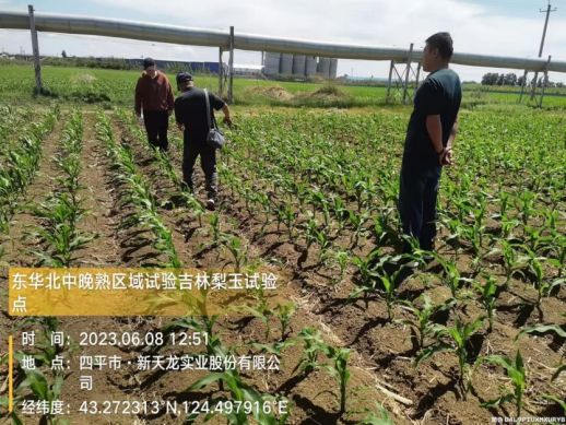 2023年6月8日考察林梨樹試點(diǎn),東華北中熟區(qū)域,由吉林省梨玉種業(yè)有限公司承擔(dān),試驗(yàn)點(diǎn)交通便利,苗檢時(shí)5葉 1 芯,田間管理到位,田間苗勻齊壯,試驗(yàn)執(zhí)行符合試驗(yàn)方案要求,苗勻齊壯。田間發(fā)現(xiàn)粘蟲,已建議及時(shí)處理,綜合評(píng)價(jià)優(yōu)。